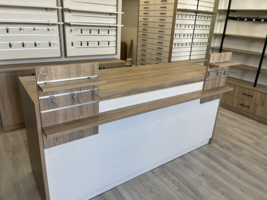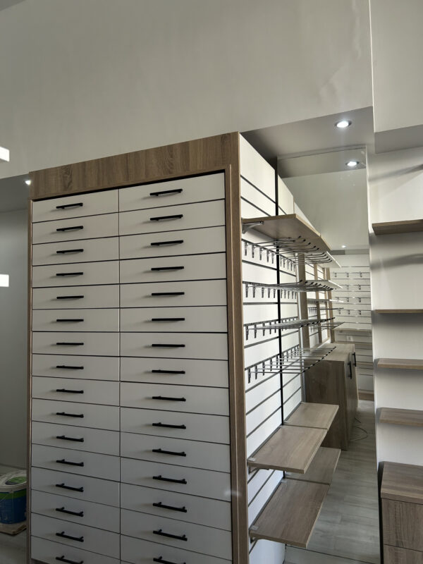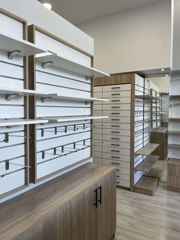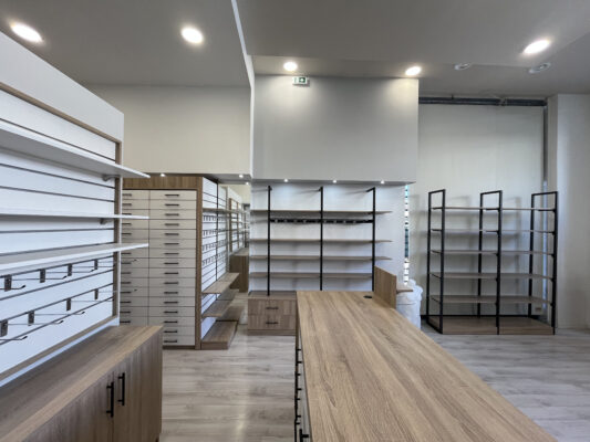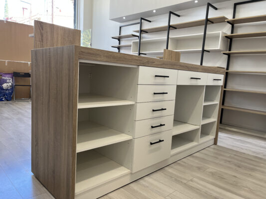 Μελέτη, σχεδίαση και κατασκευή επίπλων φαρμακείου από την ΕΠΙΠΛΟ ΑΛΚΟ για φαρμακείο στο Ωραιόκαστρο Θεσσαλονίκης.